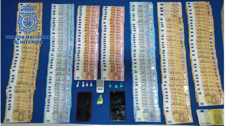 con la preceptiva autorización Judicial, en la que participaron, junto a policía judicial, unidades de la brigada provincial de seguridad ciudadana así como la unidad de guías caninos, en una vivienda sita en la calle Júcar, donde fueron intervenidas 180 dosis de cocaína, una bascula, una escopeta de caza, varios teléfonos móviles, tres coches de alta gama, una moto y 7.800 € en efectivo, procediendo en ese instante a la detención del investigado, como presunto responsable de un delito contra la salud pública, concretamente tráfico de drogas.