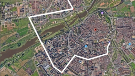 En Badajoz, concretamente, el boceto parte de la zona centro y finaliza en la margen derecha de la ciudad, en la estación de tren, atravesando para llegar a ella el puente Real. La Fundación indica en el documento que se han tomado como referencia algunos raíles antiguos.