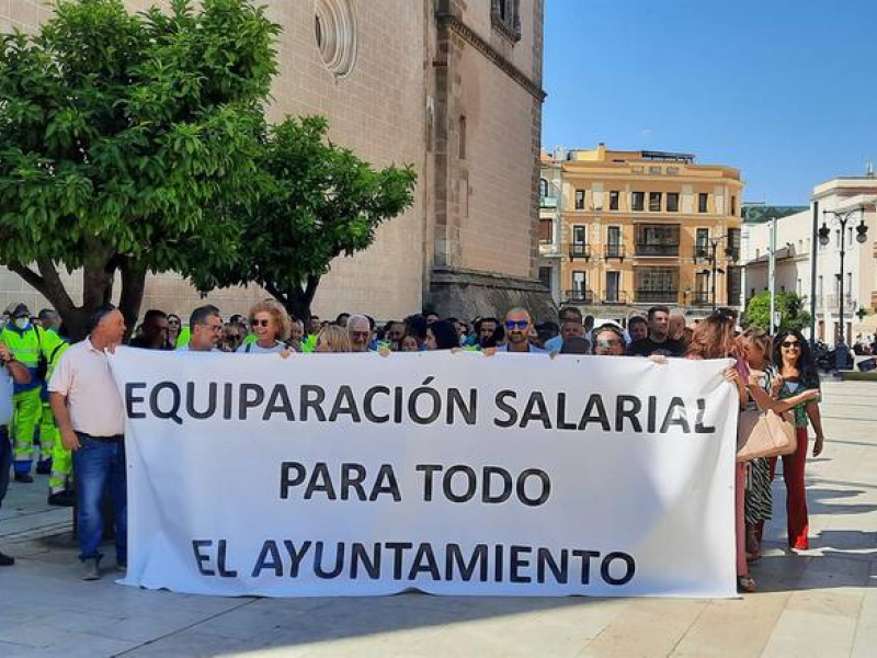 Por esta razón, el resto de colectivos reclaman una subida salarial "si se puede" y "justa para todos, no solamente para unos", en una nueva concentración celebrada frente al Ayuntamiento de Badajoz.