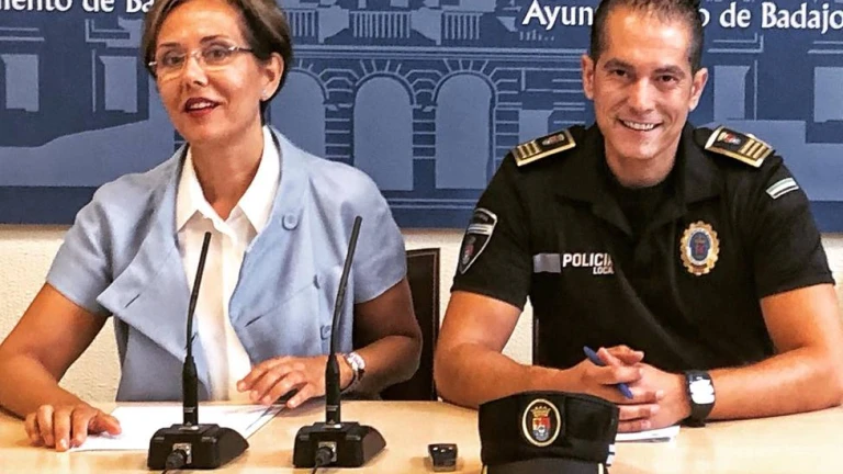 María José Solana, concejala delegada de la Policía Local de Badajoz, y el superintendente del cuerpo, Rubén M
