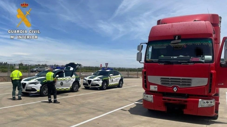 El aviso de un usuario de la carretera permitió a los agentes interceptar al camionero en el término municipal de Villanueva de la Serena, a los pocos kilómetros de emprender la marcha en sentido hacia la autovía A-5.
