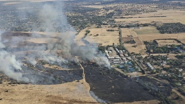 Muy Cerca del incendio del pasado viernes y de similares característica. Un nuevo fuego de pastos mantiene en alerta Bomberos del Parque Municipal, Policía Local y los medios del Plan INFOEX por la proximidad a viviendas y al Complejo Deportivo y Cultural Militar “Sancha Brava”, que ha sido desalojado y de cuya piscina están recargando agua los helicópteros antiincendios.