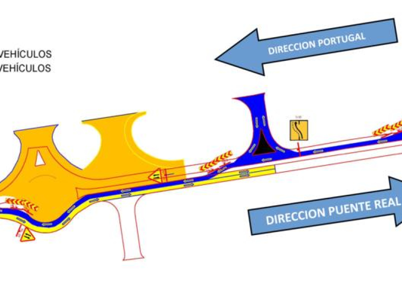 Según el comunicado emitido por Policía Local, se implementarán cambios en la circulación vial en la zona afectada por las obras. Específicamente, se anularán los dos carriles de circulación en dirección a Portugal a la altura de la obra. En su lugar, se habilitará el carril interior de sentido Puente Real en dirección a Portugal.