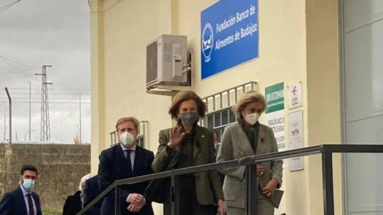 La reina Sofía ha visitado esta tarde la sede de la Fundación Banco de Alimentos de Badajoz -entidad que ha cumplido 25 años-, donde se ha interesado por el trabajo que realiza la ONG y sus voluntarios, labor especialmente importante en los actuales momentos de pandemia.