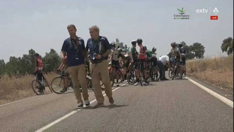 Una multitudinaria caída ha obligado a suspender la segunda etapa de la Vuelta Ciclista a Extremadura, entre Llerena y Quintana de la Serena, después de que hasta seis ciclistas hayan sido evacuados al hospital para evaluar sus lesiones.