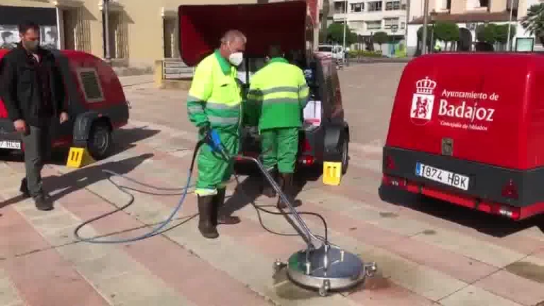 Nuevas máquinas para el servicio de limpieza del Ayuntamiento de Badajoz. Se trata de tres máquinas de vapor y alta presión capaces de extraer todo tipo de suciedad del acerado, incluyendo cera, grasa y chicles. La partida tiene un valor total de casi 150.000 € y una de ellas irá destinada a la limpieza en las pedanías.