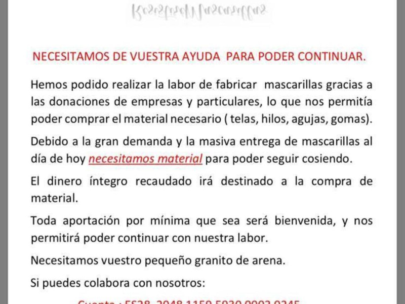 "Muchas veces, no siempre. Al ser gratis, no lo respetan lo mismo. En mi caso, no coso, reparto y me pongo en contacto con las personas que demandan mascarillas. Voy de un lado a otro d la ciudad,desde las 10 de la mañana hasta las 14h. De un barrio a otro. Y cuando llamo a las personas, muchas, no acuden al punto de encuentro", denuncian en su facebook. "Solo pido respeto y por favor, que se atienda a la llamada. Mi tiempo es oro. Llevo más de dos meses expuesta y en riesgo pero solo pido,que se atienda mi llamada, creo que no es tanto".
