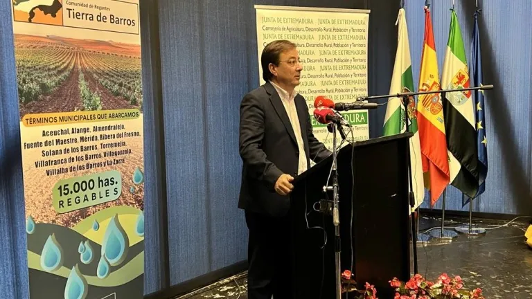 Guillermo Fernández Vara ha realizado estas declaraciones este martes en Almendralejo, con motivo de la presentación del convenio entre la Consejería de Agricultura, Desarrollo Rural, Población y Territorio y la Comunidad de Regantes 'Tierra de Barros' para la transformación en regadío de la zona regable de Tierra de Barros.