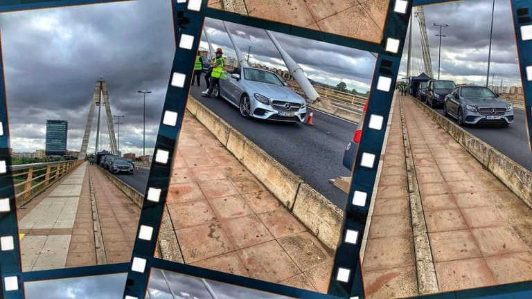 Dos días ha estado cerrado el carril sentido Portugal del Puente Real por la grabación de un spot publicitario de la marca Mercedes.