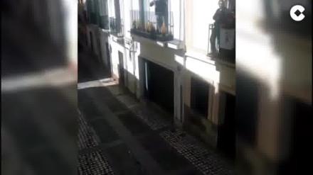 La intensa actividad cultural que desarrolla los vecinos de esta vía pacense se pone patente en estos dia con música desde los balcones.