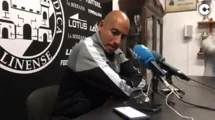El entrenador pacense comparece ente los medios tras caer derrotado por la Balona 1-0 en el Municipal Linense