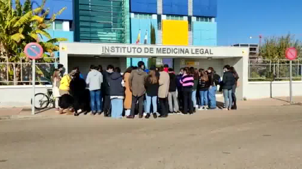 Estudiantes de la RUCAB, centro en el que se alojaba Pablo Sierra, han depositado velas ante el Instituto Anatómico Forense, lugar al que se ha sido trasladado su cadáver.