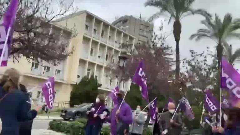 Autolimitada a 50 personas y bajo medidas de seguridad frente a la Covid-19 como mantener la distancia de seguridad, para lo cual se han marcado cruces en el suelo, la concentración se ha organizado bajo el lema 'Vivas, libres, unidas en la acción y en la reivindicación', en la que se han podido leer carteles como 'También en el trabajo no es no... No al acoso sexual' o 'Mismo trabajo mismo salario'. Acompañados de palmas, también se han escuchado voces como 'Queremos paridad, somos la mitad'.