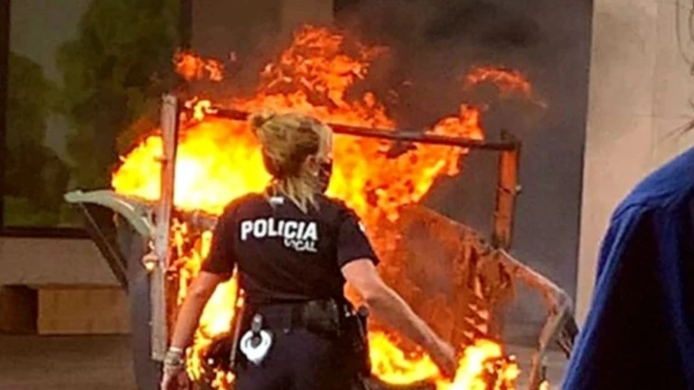 Bomberos y Policía Local han asegurado la zona y sofocado el incendio. En el trascurso de la operación se ha detenido a un joven por conducción temeraria.