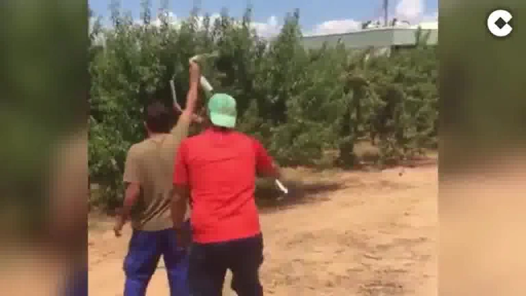 Los Agricultores extremeños no pierden el sentido del humor y tienen este 7 de Julio su "San Fermín" ante este curioso "toro"