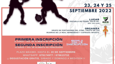 Se celebrará del 23 al 25 de septiembre en las instalaciones de la Escuela de Pádel Julio S.C.