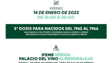 Se establecen dos sedes, el Ifeme de Mérida y el Palacio del Vino de Almendralejo, hasta donde se desplazarán los residentes de las localidades distribuidas por zonas de salud