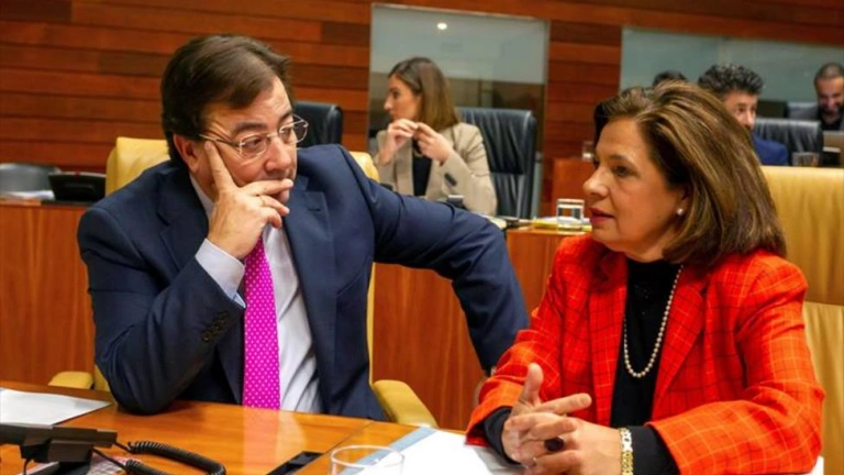 El pte de Extremadura, Fdez. Vara, junto a la vicepresidenta Pilar Blanco Morales. Foto: Jero Morales (EFE)