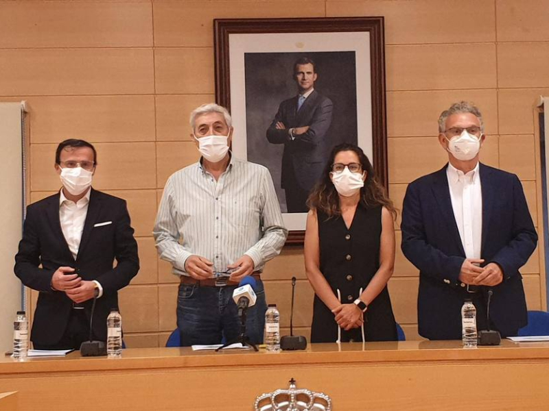 Alcaldes de Don Benito y Villanueva, José L. Quintana y Miguel Á. Gallardo, junto a miembros de la comisión
