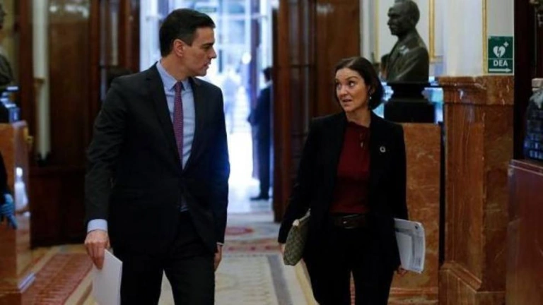 Pedro Sánchez junto a la ministra de Industria, Reyes Maroto, en el Congreso. Archivo
