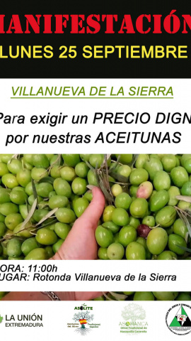 Los agricultores cacereños vuelven a exigir un precio justo para sus aceitunas