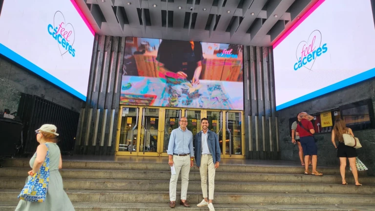 Cáceres aparece en pantallas de Gran Vía y en la plaza del Callao