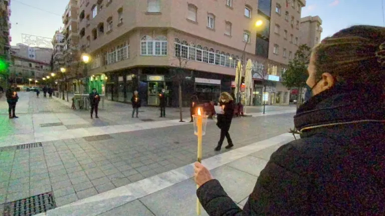 Una quincena de comerciantes de la capital cacereña se han concentrado la tarde de este jueves, vestidos de negro, vela en mano y con todas las medidas anticovid, en el entorno de la calle San Pedro de Alcántara, para mostrar su esperanza de que el “final del túnel” esté cerca y pedir que cuando este llegue se apoye al pequeño comercio cacereño.