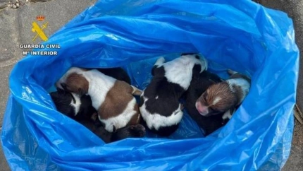 Una perra delata a su dueño y guía a la Guardia Civil hasta sus cachorros abandonados en la basura
