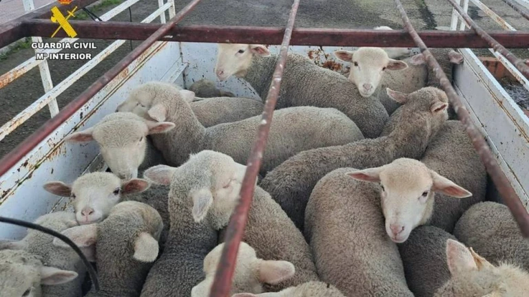 La Guardia Civil ha detenido a tres hombres por el robo de 28 corderos de una finca de Logrosán que transportaban en un remolque en el cual fallecieron dos de los animales debido a la "nefastas" condiciones de espacio en las que eran transportados.