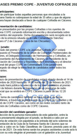 El galardón reconoce la trayectoria y la implicación de los menores de 35 años en la Semana Santa cacereña, de Interés Turístico Internacional.