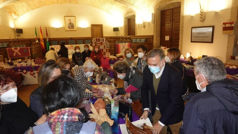 La delegación placentina de Aoex ha vuelto a instalar en el salon de plenos del ayuntamiento de Plasencia el tradicional Rastrillo Navideño Solidario.