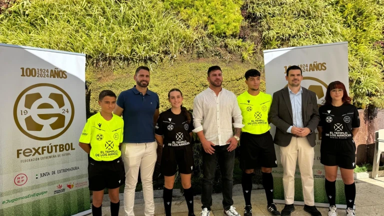 La presentación del protocolo en Cáceres está relacionada con su patrocinador en las camisetas: El ‘Templo de los Arroces’, que cuenta con el restaurante La Casa del Sol en la ciudad cacereña, en una iniciativa pionera en España: patrocinar a los árbitros de las categorías inferiores.