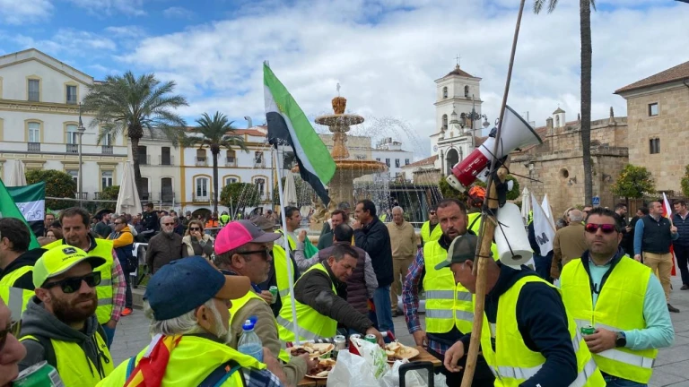 Cientos de agricultores y ganaderos convocados por la Plataforma en Defensa del Campo se han vuelto a concentrar hoy en Mérida. Han llegado desde diferentes punto de la región y muchos de ellos con sus tractores. Aseguran que “no quieren más mentiras”, que quieren “medidas concretas” y que las anunciadas ayer por el ministro son, a su juicio, “migajas”.