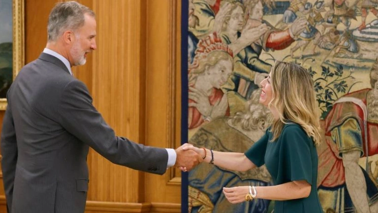 La presidenta de la Junta de Extremadura, María Guardiola, ha sido recibida este viernes por Su Majestad el Rey Felipe VI en el Palacio de La Zarzuela con motivo de su nombramiento como presidenta de la Comunidad Autónoma.