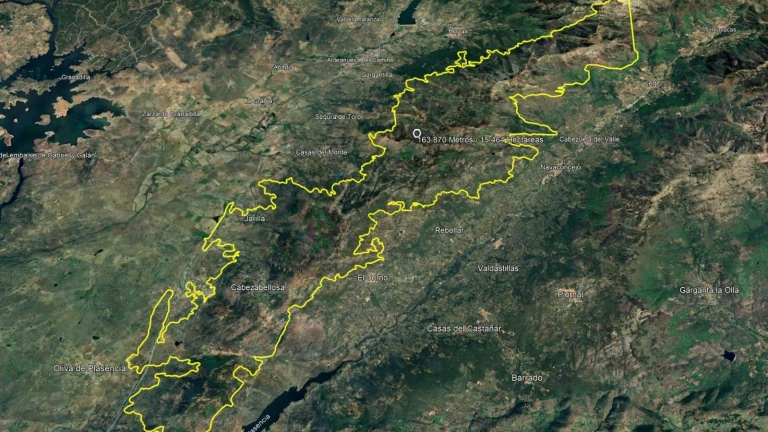 El incendio de Jarilla (Cáceres), cuya cabeza está "totalmente descontrolada" y que ha quemado ya más de 15.400 hectáreas, acaba de pasar a la comunidad vecina de Castilla y León en la provincia de Salamanca.