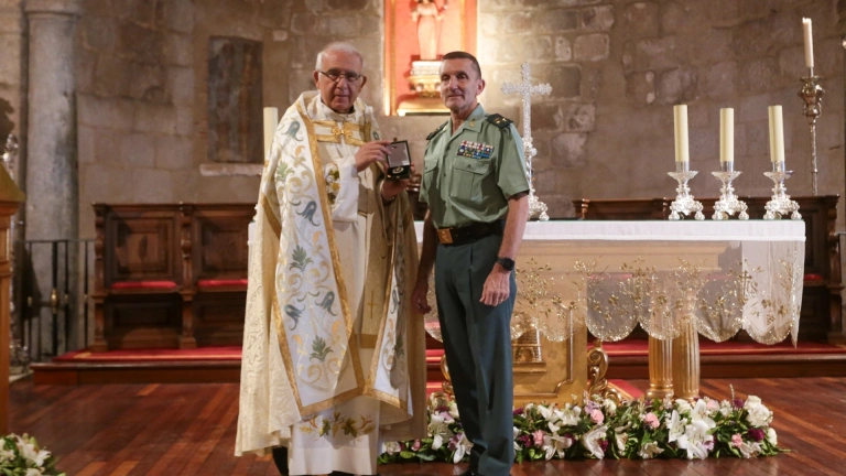 El General de División, José Manuel Santiago Marín, ofrece la medalla a Santa Eulalia
