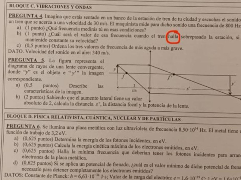 A esta queja se suma el desconcierto por un error ortográfico en el examen de Física, celebrado ese mismo martes, que contenía la expresión “cuando el tren halla sobrepasado”, usando incorrectamente el verbo hallar en lugar de haber.