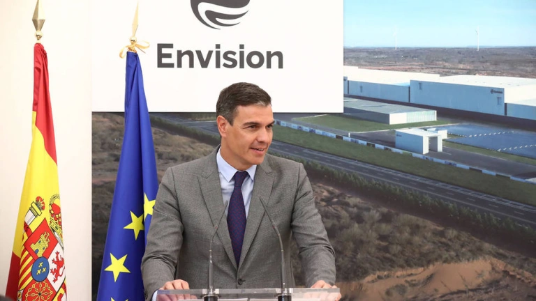 El presidente del Gobierno, Pedro Sánchez, preside este lunes, 8 de julio, el acto de colocación de la primera piedra de la gigafactoría de baterías que el grupo Envision AESC construirá en la localidad cacereña de Navalmoral de la Mata.