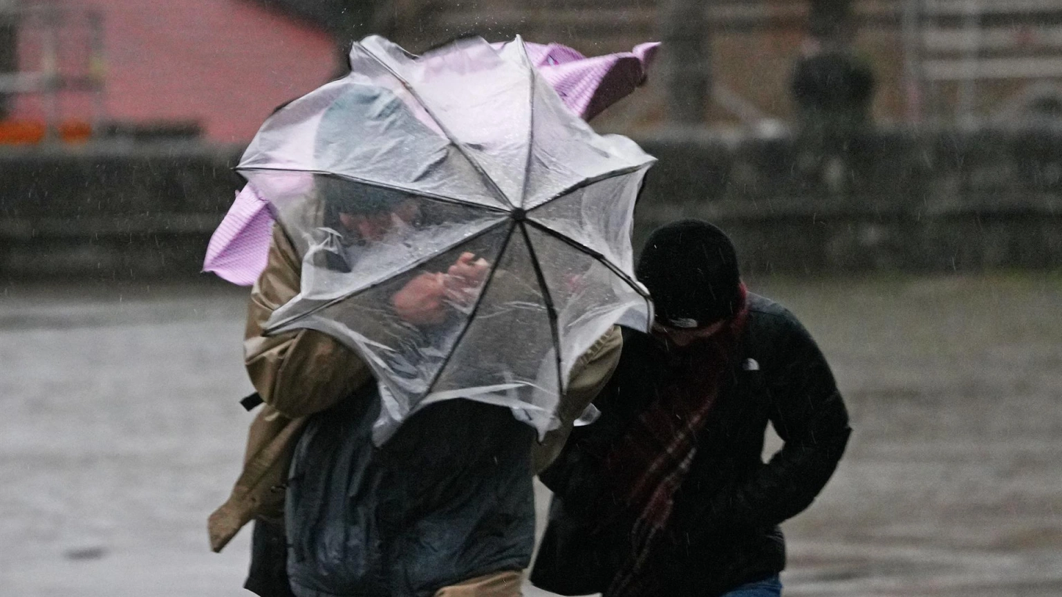 Varias personas intentan sujetar sus paraguas en una imagen de archivo