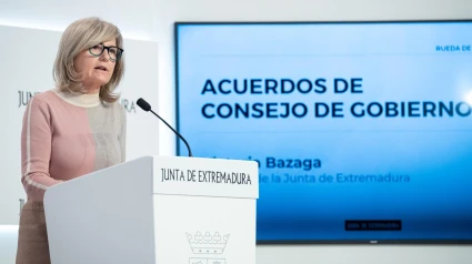 La portavoz de la Junta de Extremadura, Victoria Bazaga, en rueda de prensa