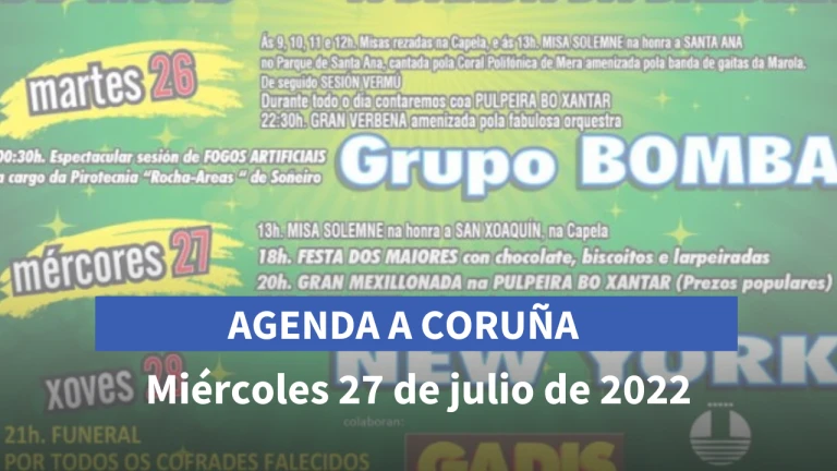 Agenda cultural A Coruña miércoles, 27 de julio de 2022