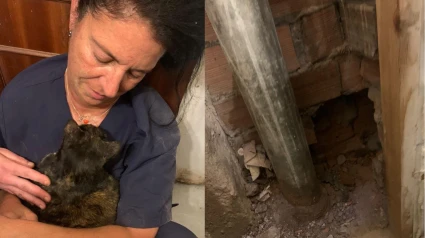 María, una veterinaria de A Coruña, rescata a una gata atrapada 24 horas entre los muros de dos edificios