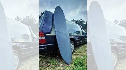 Víctor utiliza un coche fúnebre como vehículo de empresa para llevar tablas de surf