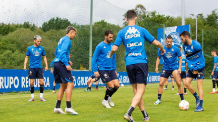 Lucas quiere estar en el Linares-Depor. Hoy se entrenó con el grupo probando la máscara. Villares en sala de prensa. Cris Martínez (Dépor ABANCA) y Francesco Aragona (OAR Coruña)
