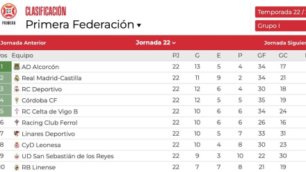 La clasificación desde diciembre arrojaría a un Celta B líder, con veinte puntos de los últimos veintisiete, y a un Deportivo, segundo, con diecisiete
