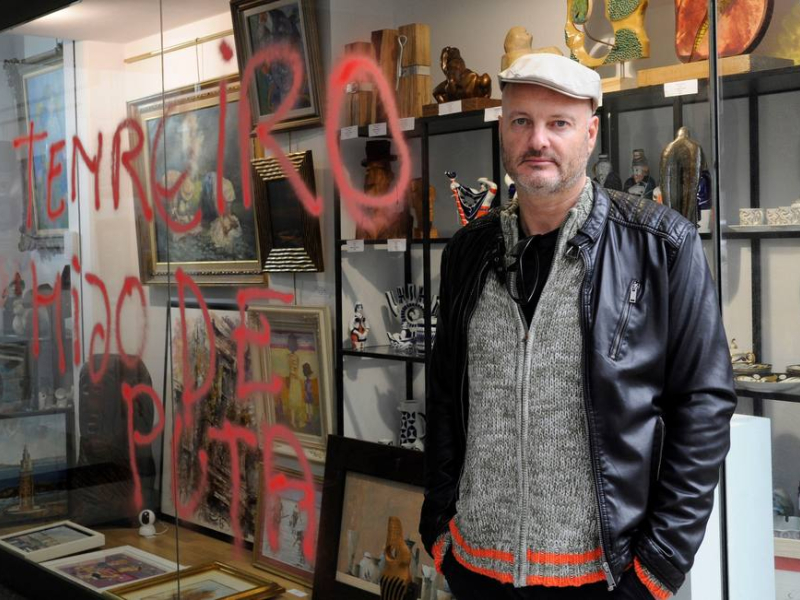 Inmediatamente fue retenido por el personal de seguridad y arrestado por la Guardia Civil. Desde ese momento, Tenreiro recibió tanto muestras de apoyo como insultos y amenazas, como las pintadas en una galería de arte de la calle de San Andrés, en A Coruña, donde exponían su obra.