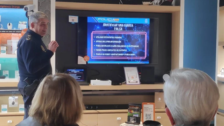 Charla policial de ciberseguridad a mayores en la tienda Orange de A Coruña