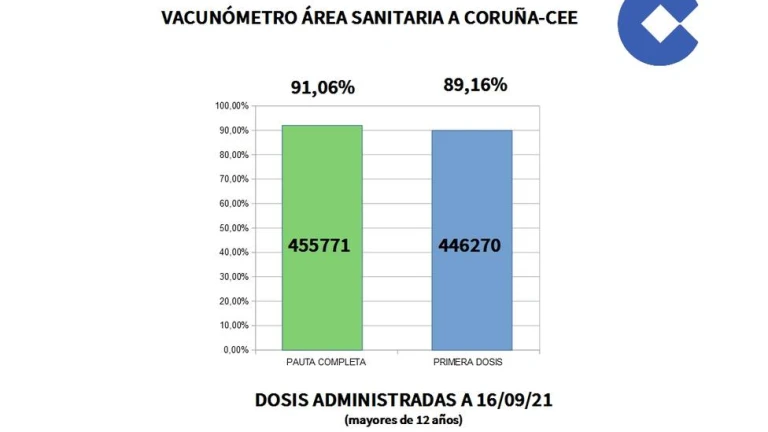 El área sanitaria de A Coruña-Cee alcanza la inmunidad de grupo ante el coronavirus La vacunación cubre ya a más del 91,06% de la población diana en el área sanitaria, la mayor de 12 años. La cifra está por encima del 90% fijado por los expertos en los últimos meses para considerar que hay una protección grupal contra el virus. En total, hay 455.771 con la pauta completa de la vacuna, que supone el 82,86% del total de habitantes del distrito sanitario. Este fin de semana se reanuda el proceso de vacunación sin cita. Este viernes y el domingo las personas que lo deseen pueden acercarse a Expocoruña o al Hospital de Cee para recibir la primera dosis de la vacuna si no se han inmunizado hasta ahora. En la primera jornada hay 5000 huecos, de 9 de la mañana a 20h en Expocoruña, para las personas que se acerquen, autocitas previas y repescas. En el caso de Cee el horario es de 15h a 20h El domingo por la mañana también abrirán los recintos para cualquiera que se acerque sin haber concertado antes hora y fecha. Será de 9h a 15h.
