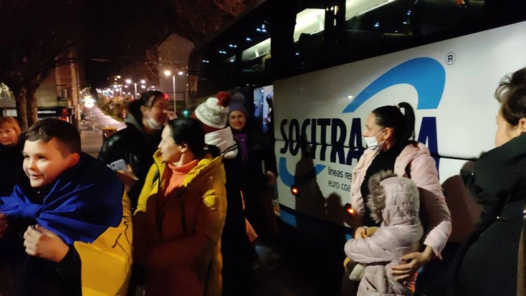 Este domingo llegó a A Coruña un grupo de 25 mujeres y niños procedentes del Campo de Refugiados de Truskavets, en un traslado coordinado por la asociación AGA-Ucraina Fueron recibidos en la sede de IESIDE, que pertenece a Abanca con una chocolatada en las instalaciones. Un grupo de empresarias de Sarria pagó el viaje del autobús.