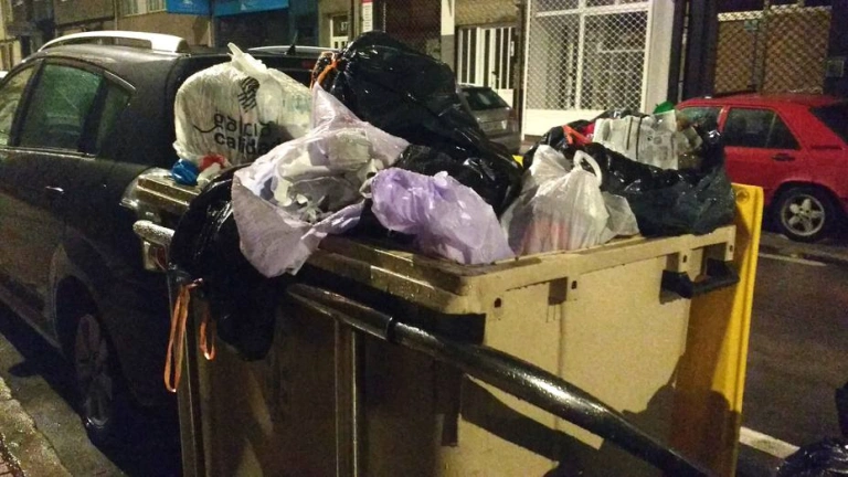 El Ayuntamiento anunció que descontará de la factura a Cespa el servicio no realizado estos días y confiaba ayer en que el refuerzo diurno "compensase la situación", pero no lo ha hecho. Hay zonas en las que la basura se ha ido apilando en los contenedores y las aceras desde el viernes.